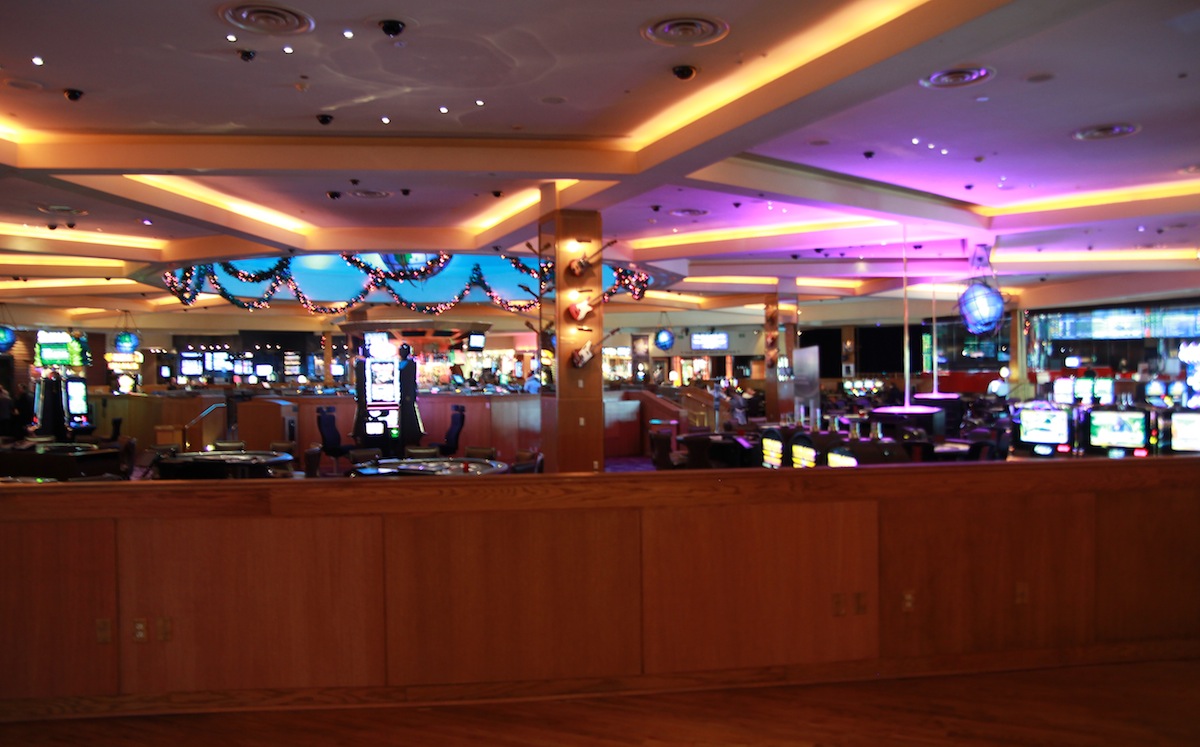Featured in the center of the circular lobby area was the center bar, where they obviously served drinks. Around the bar, at every tall chair, was a video poker machine which accepted 25ยข minimum bets. The next night, one of those machines would take $5 from us. Outside the bar area was the table area of the casino, which was made up of multiple blackjack, roulette, and craps tables. Within these tables, there were also a few small tables with poles up to the ceiling. These tables were lit up, and meant for dancing, and although there were several poles around the lobby, only one dancer was there at a time.